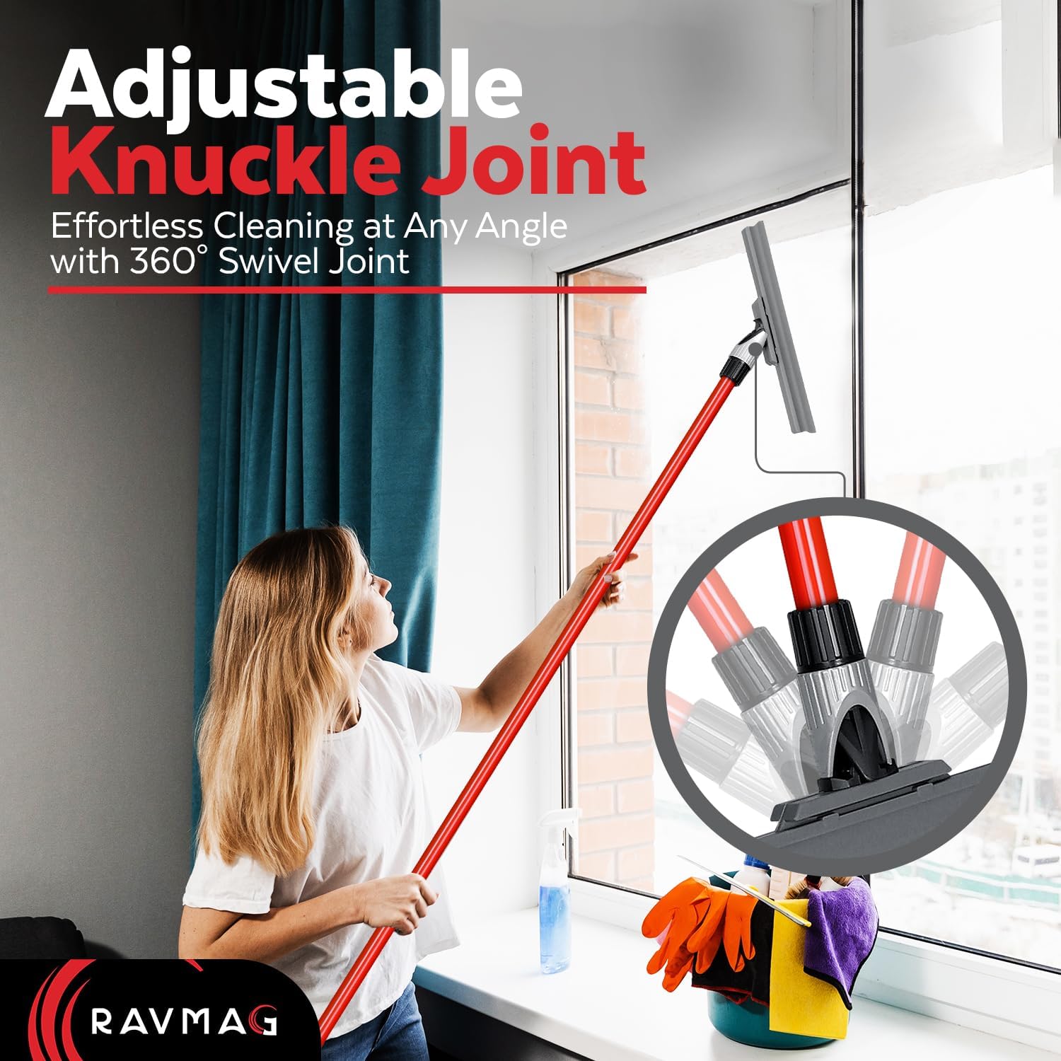 - ADJUSTABLE KNUCKLE JOINT: The RAVMAG Silicone Squeegee features an innovative adjustable knuckle joint that effortlessly adapts to various cleaning angles. This squeegee delivers exceptional performance in cleaning windows and other glass surfaces.