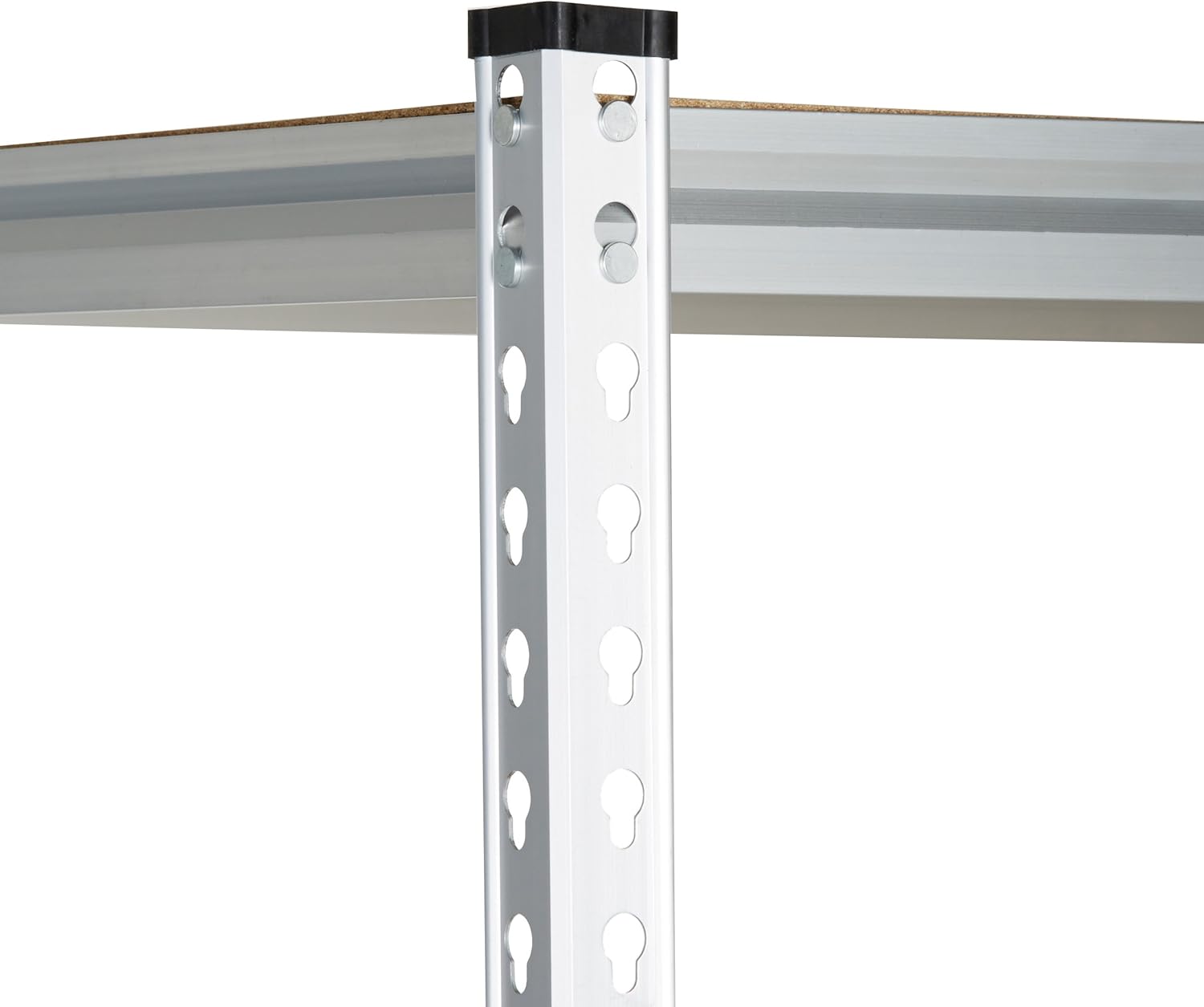 - Durable high-grade aluminum construction with anodizing finish; press-board shelves adjust up or down in 1-1/2-inch increments