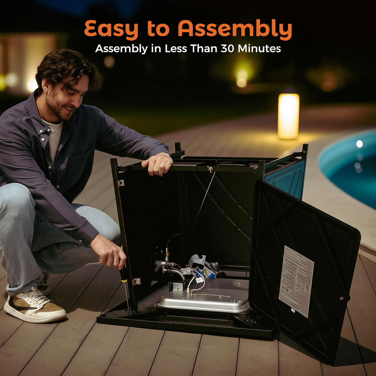 - EASY ASSEMBLY AND START: The assembly of this gas fire pit table is mainly screwing all parts together, and the push button spark Piezo ignition system provides simple and convenient control when lighting
