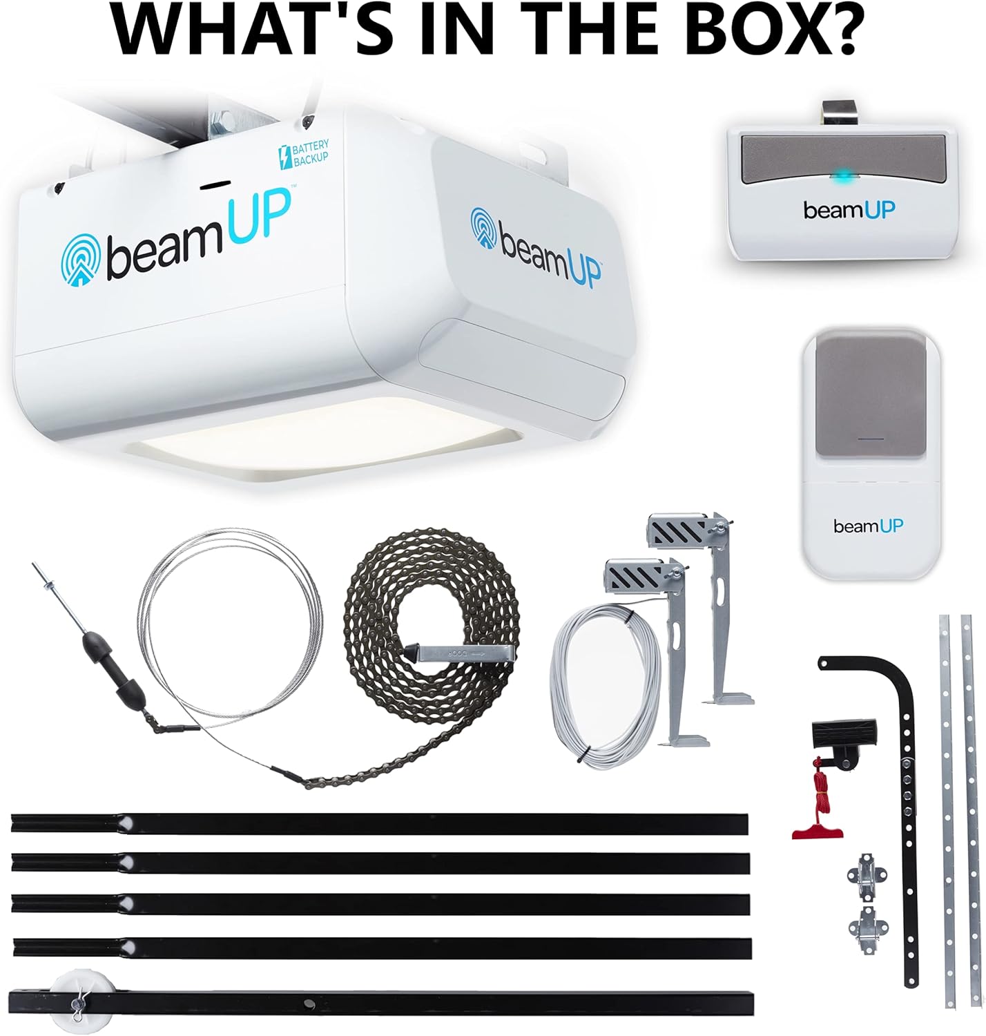 - EFFORTLESS GARAGE DOOR OPENER: Say goodbye to manual lifting & effortlessly open & close your garage door with the beamUP Sectional Garage Door Opener Set. Whether it's an 8'x7' single or 16'x7' double door, the BU250 Everlift provides a smooth & quiet operation
