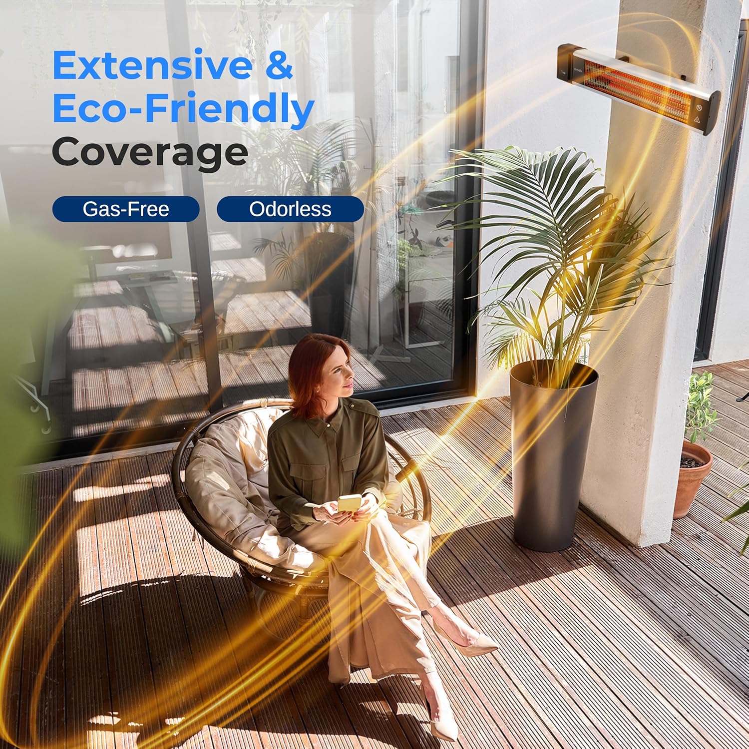 SereneLife Infrared Patio Heater, Wall-Mounted Electric Heater with Remote, 1500W, IP65 Approved, Odorless, Indoor/Outdoor for Patio, Restaurant, Backyard, Garage, Decks