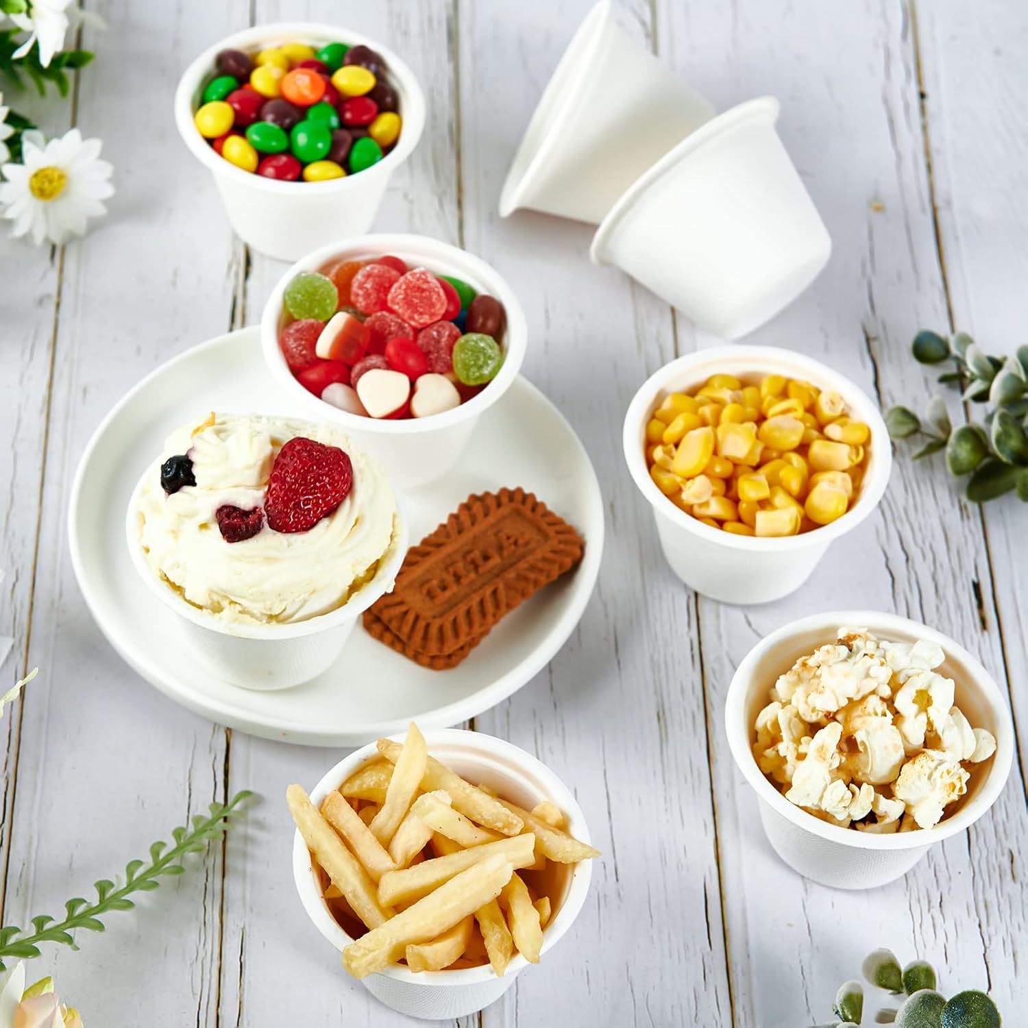 - Versatile Compostable Cups: You will get 200 pack 4 oz biodegradable cups. You can use them as portion cups, souffle cups, condiment cups, and sample cups. They're also great for making jellies and ice cream for parties