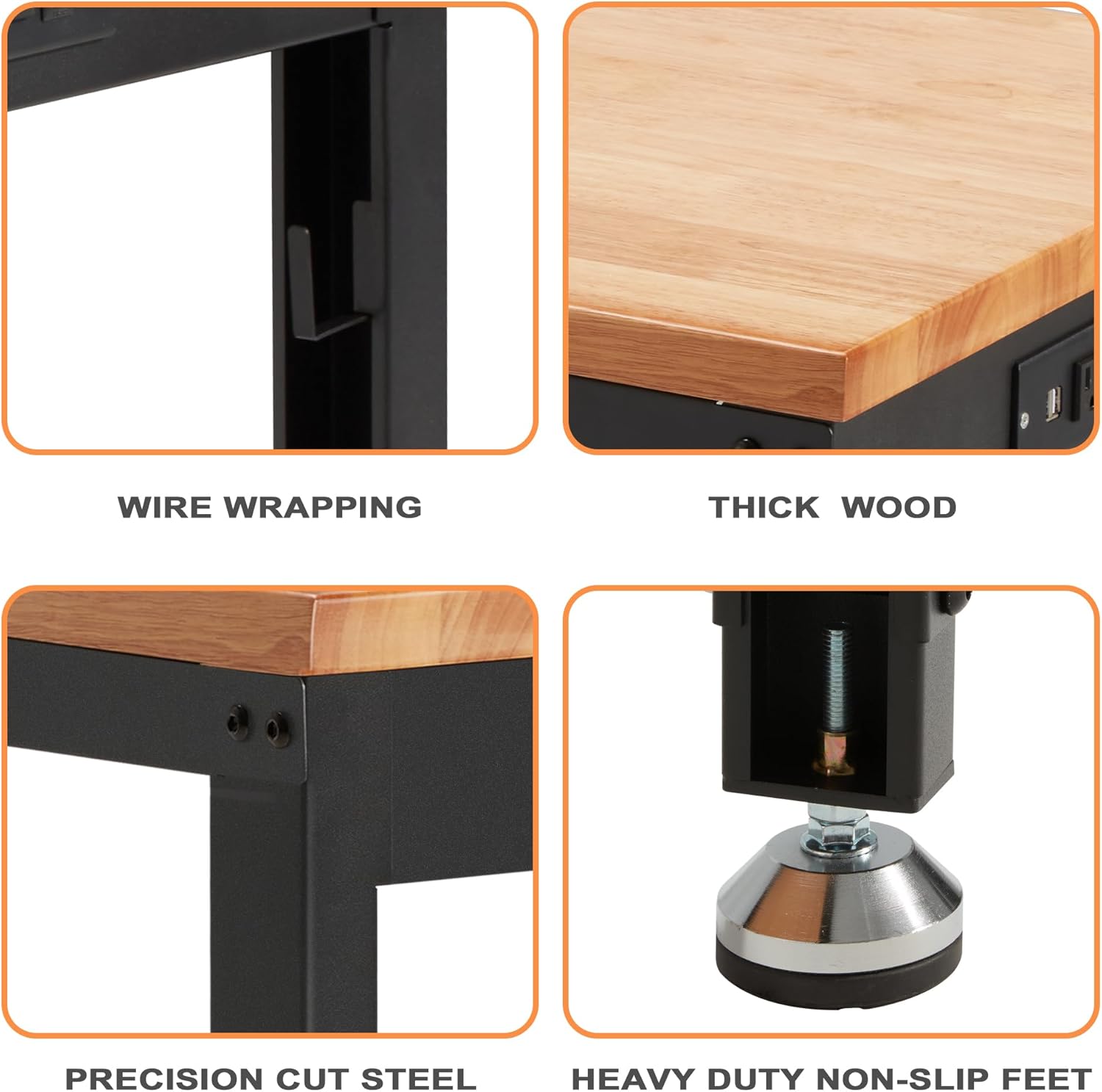 - Heavy Duty Feet: 4 antiskid feet is equipped with premium rubber, keeping the tool bench from sliding; And the little adjustment design helps workshop table keep balance on the uneven ground