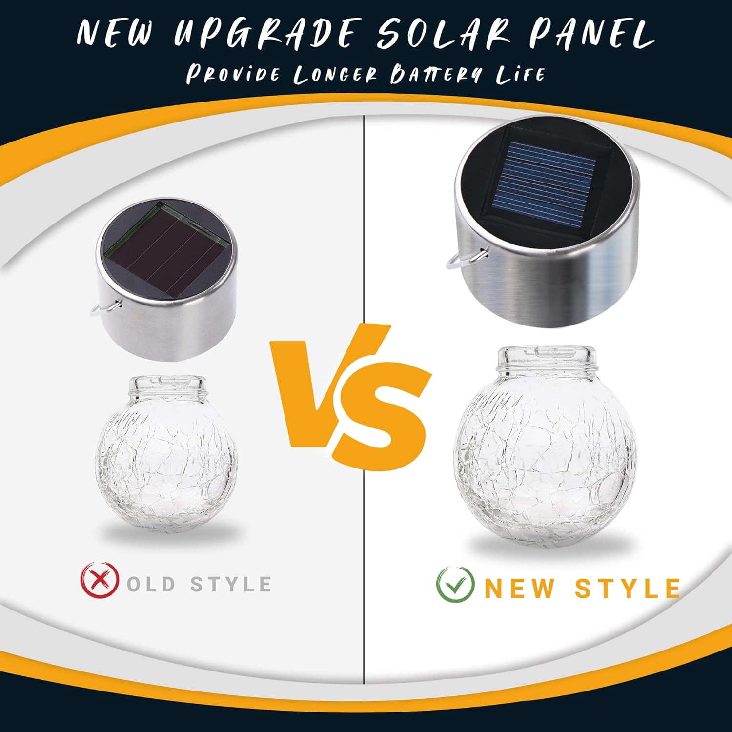 GIGALUMI 8 Pack Solar Outdoor Hanging Lights - Warm White LED, Water Resistant, Glass, Rechargeable Battery
