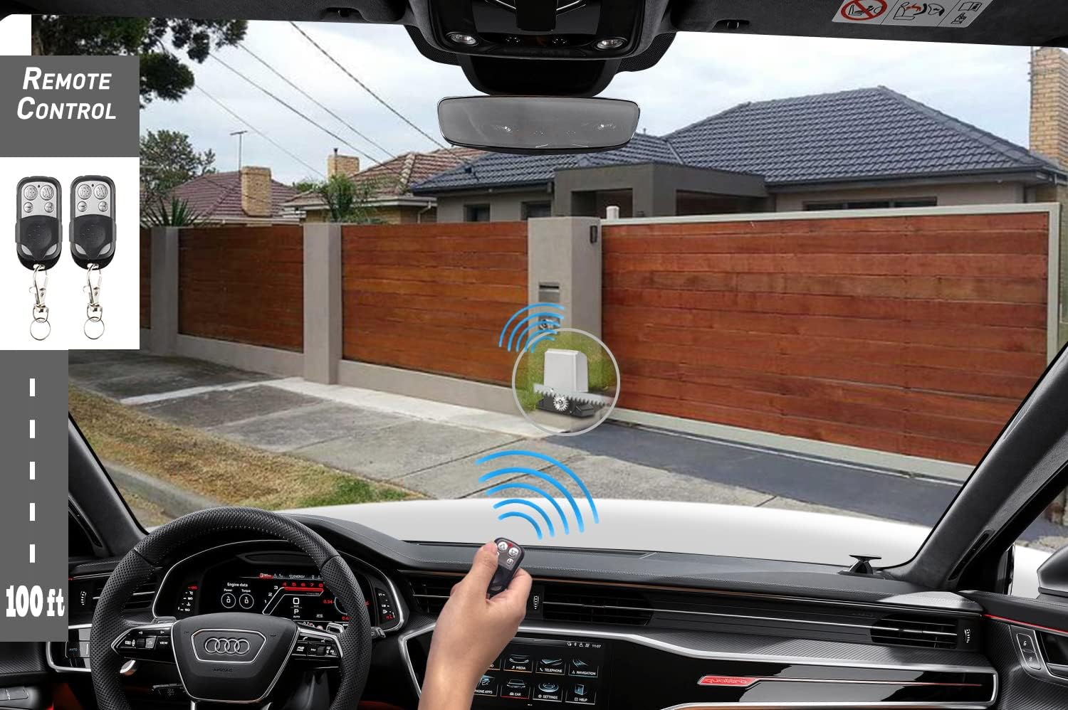 - 🔩【Smart Remote Control & Auto-Close】- Includes 2 remote controls (12V 27A battery included ) with a 100ft operating range and the ability to store up to 40 remote codes, perfect for multiple users. The auto-close function can be set to 5s, 10s, or 20s, providing added security and convenience. For advanced functionality, it supports an optional Wi-Fi module (sold separately), enabling app-based control from anywhere.