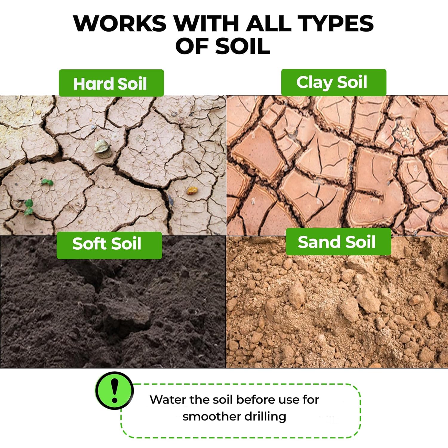 - Cut Your Work Time in Half: Say goodbye to blisters and sore hands! Our auger drill bit significantly reduces the time it takes to plant flowerbeds or install fences, enabling you to dig as many holes as you need in a fraction of the time compared to traditional methods