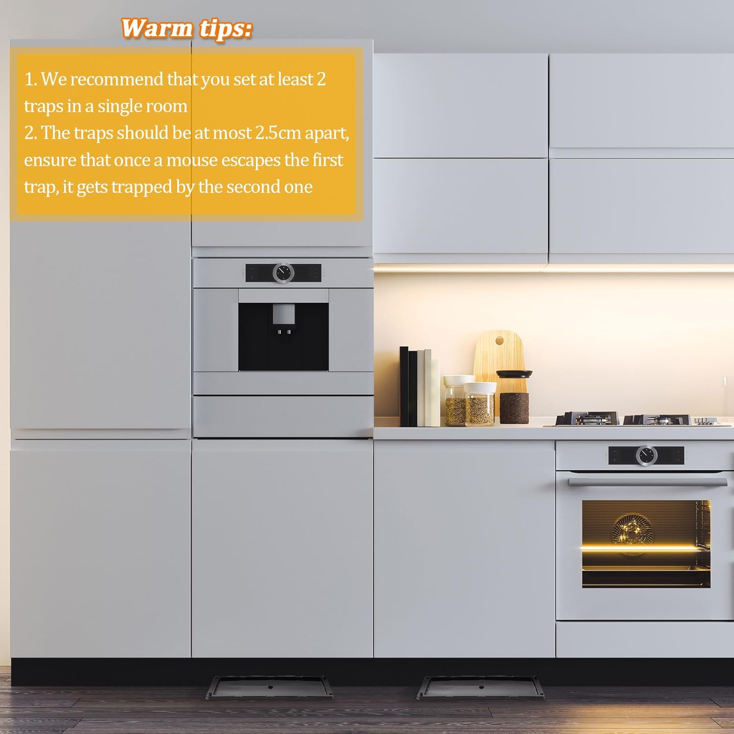 - Non Toxic Glue: the mouse traps use glue that can withstand the cold and wet environments; The sticky mouse trap is made of plastic and glue material, these glues are non toxic, and harmless to your children and pets; They are safe for use inside your house; Mice instantly stick to glue upon contact, stay confined to trap surface and cannot escape, but not an immediate kill