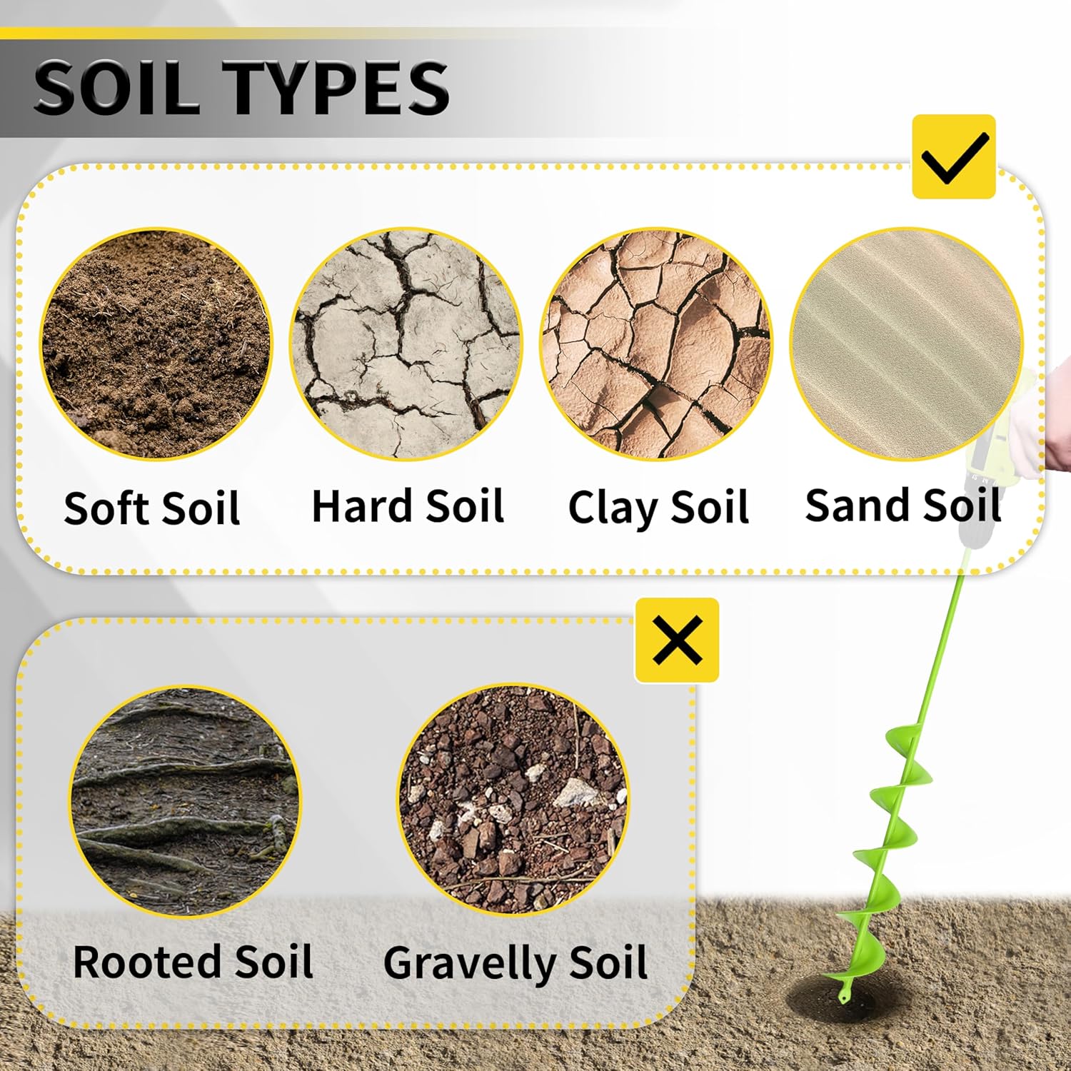 - 【Necessary Practical Gardening Tool】the heavy duty steel garden auger is a MUST-HAVE tool for any yard work. Not only as a bulb planter to plant bulb, bedding plants, flowers, also as a mixer to mix soils, fertilizers and paints. Dig Holes for fence posts, bird feeder poles, ground lights and patio umbrellas.