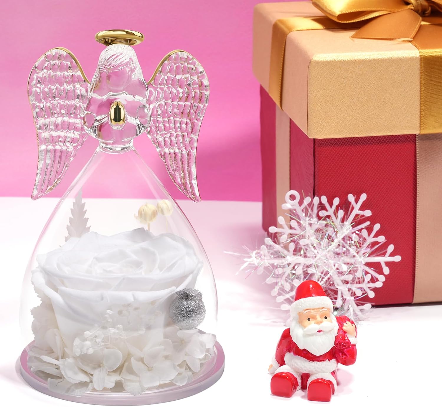 - Our angel figure forever real rose is made with unique preservation process, which can last 3-5 year, you just need to put the angel preserved flowers rose gift in a cool place, no need watering and sunlight.