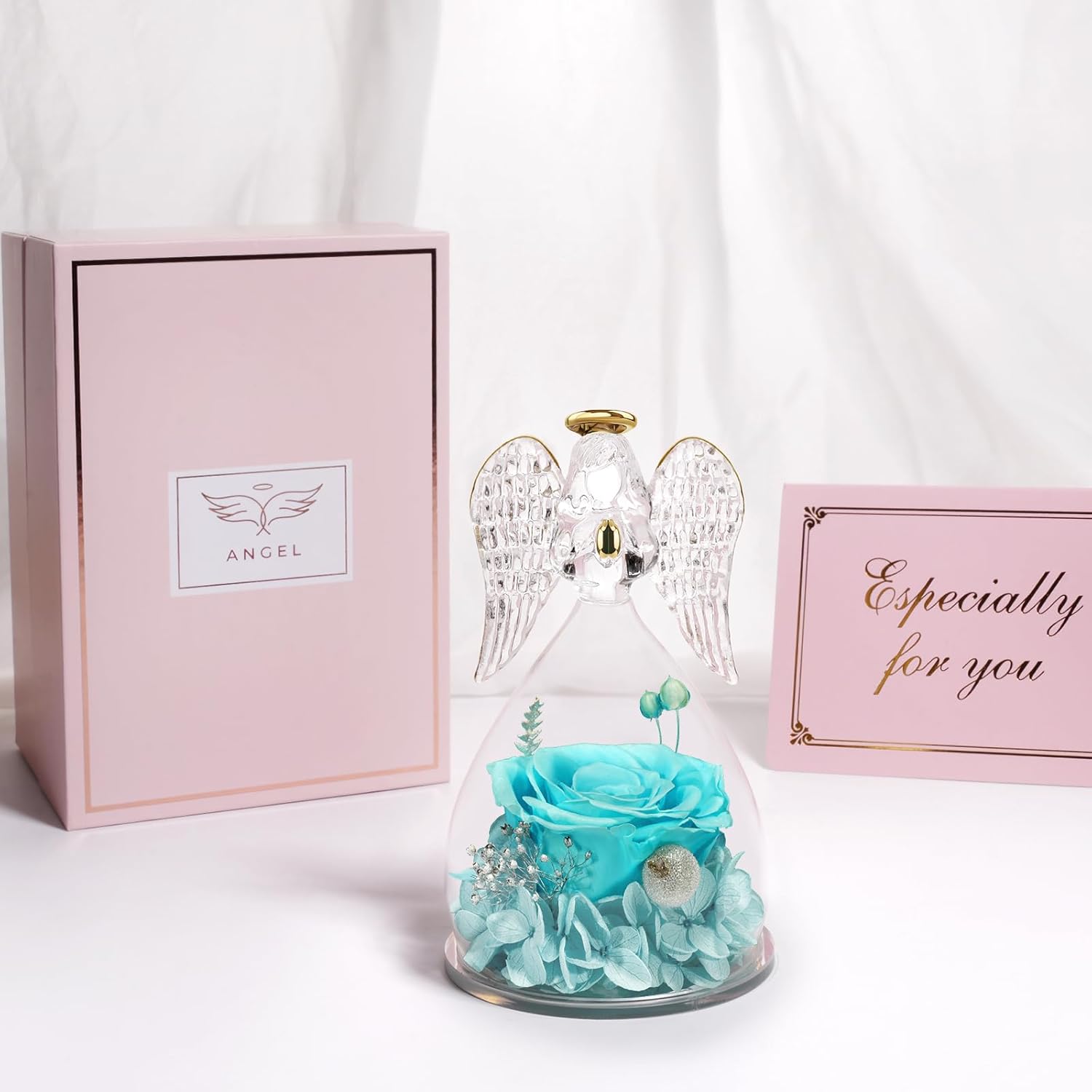 Yamonic Mom Birthday Gifts for Mom, Glass Angel Figurines with Real Rose Gifts for Her Moms Grandma,Preserved Flowers Rose Angel Figurines for Mothers Day Christmas Anniversary Birthday Gifts for Her