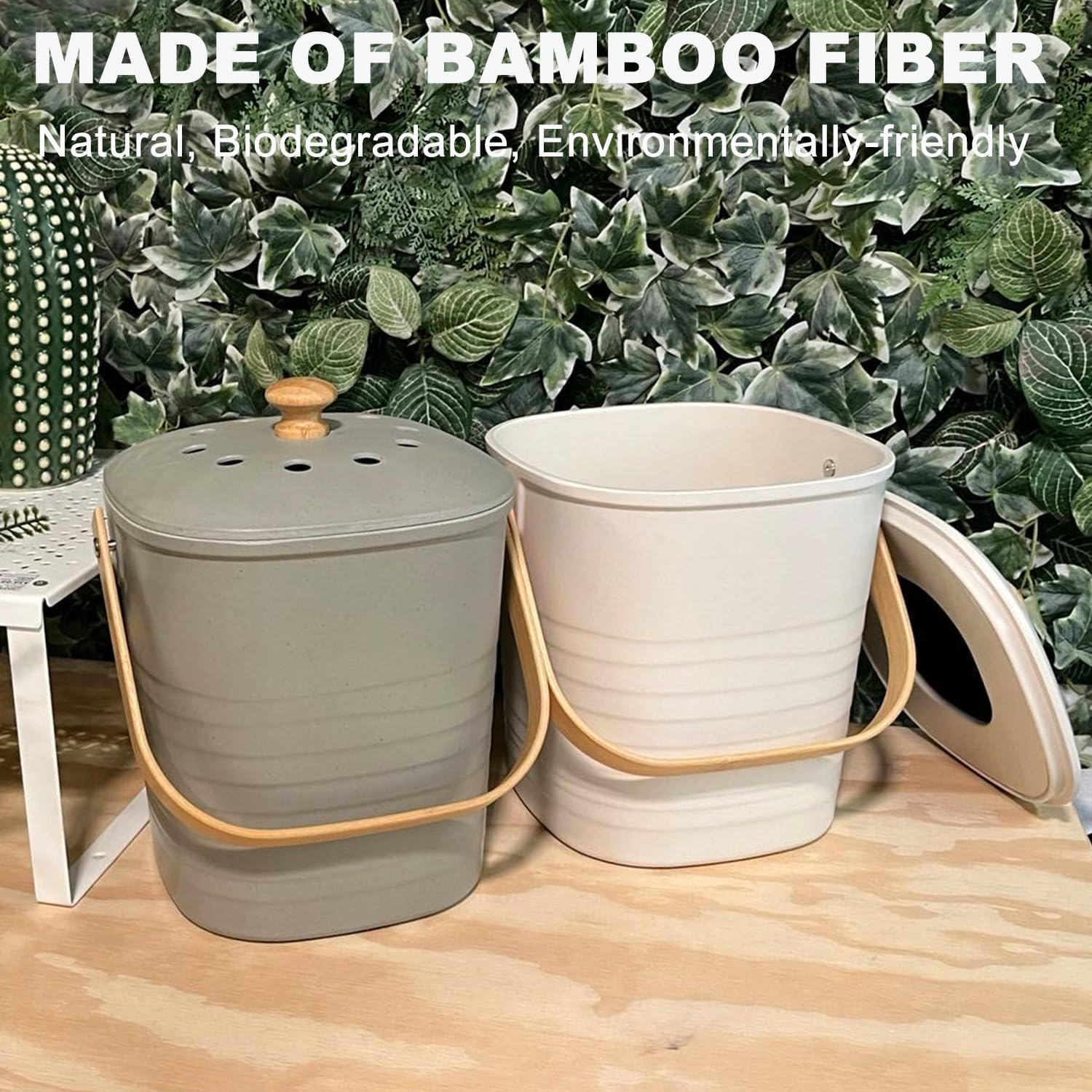 - All Natural: Made from earth-friendly recycled materials including Bamboo Fiber, Corn Starch, the counter top compost bin for kitchen in itself is biodegradable.