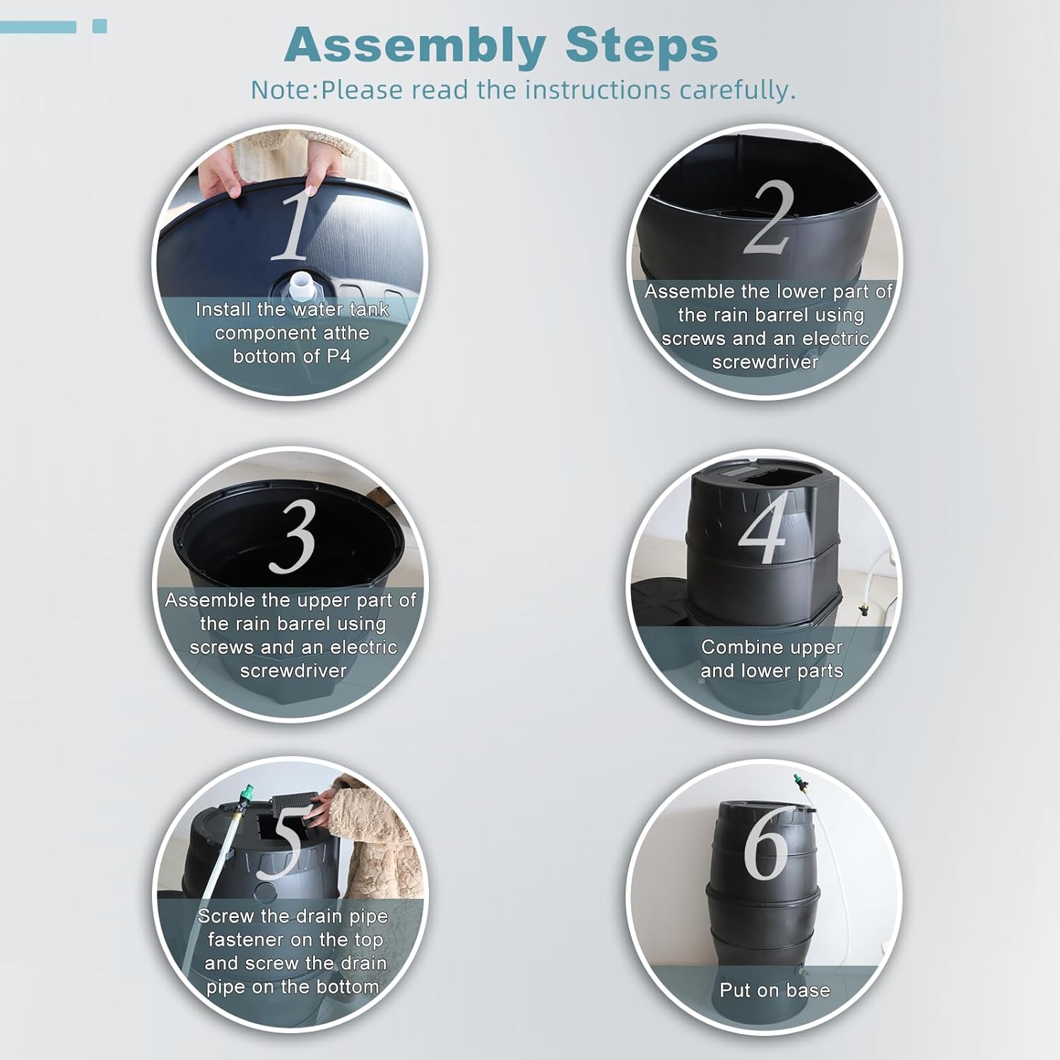 - 🌧Extra base: there is a drain hose connected to the bottom of the barrel and the base raises the water pressure. just turn on the tap to water the plants in the garden directly, which is convenient and quick.The base is made of high quality EPP and has passed the pressure test up to 200kgs.