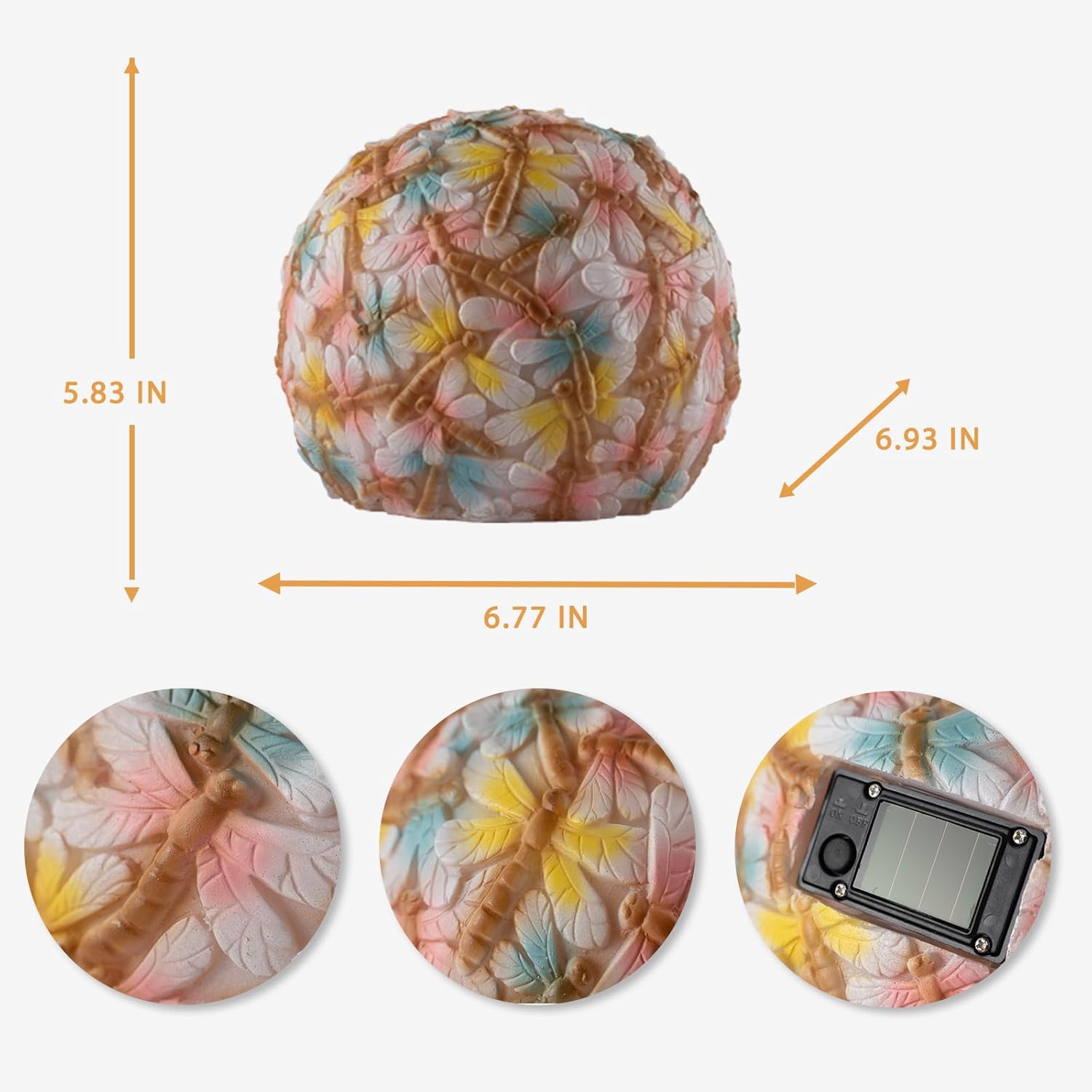 - 【COLOR CHANGING SOLAR LIGHT】This solar dragonfly ball statue is very easy to install and use.Simply turn on the switch and place it under the sunlight and let it charge during the day.These solar lights on dragonfly ball will automatically turn on at night to provide a warm and welcoming glow for 8-10hours.