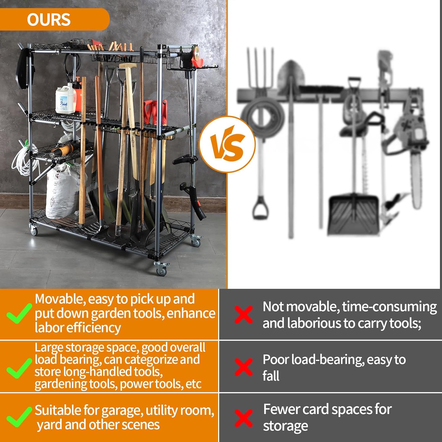 BIG Garden Tool Organizer with Wheels - Rolling Storage Rack - Multifunctional Cart