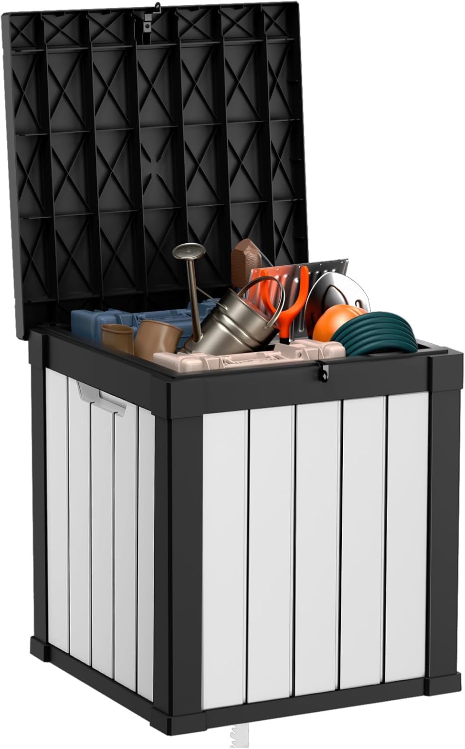 - VERSATILE IN EVERY SETTING: This patio storage box doubles as an indoor laundry organizer and an outdoor yard storage unit for cushions, garden tools, pool accessories, outdoor gear, and more, offering ample space. It can also serve as a side table, patio seat, storage bench, or footstool