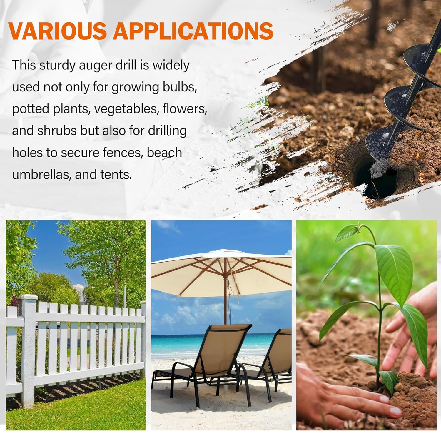 - WIDE APPLICATION: These augers for planting are perfect for planting small crops, vegetables, flowers, transplanting seedlings, mixing seeds, soil, and fertilizer. Itβs not just limited to garden work, they can even be used for fence and tent installation.