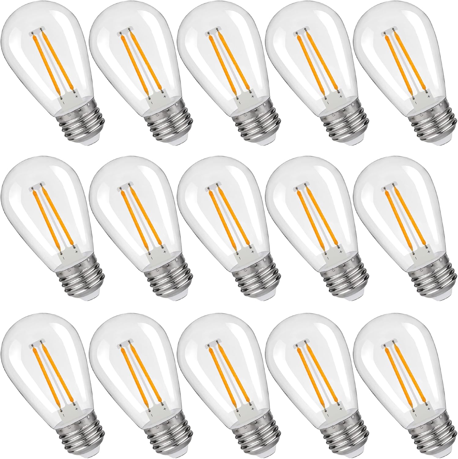 S14 Replacement LED Light Bulbs, Shatterproof & Waterproof 2W S14 Edison LED Bulbs, Outdoor String Lights, E26 Base Patio Lights, Warm White 2200K Plastic 150ML Non-Dimmable 15 Pack