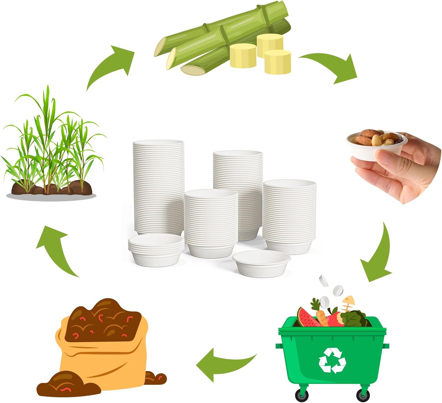 - Compostable Cups: 1 oz Compostable condiment cups can be thrown directly into the compost bin after use, and they can be fully composted within 3-6 months, reducing the waste of resources