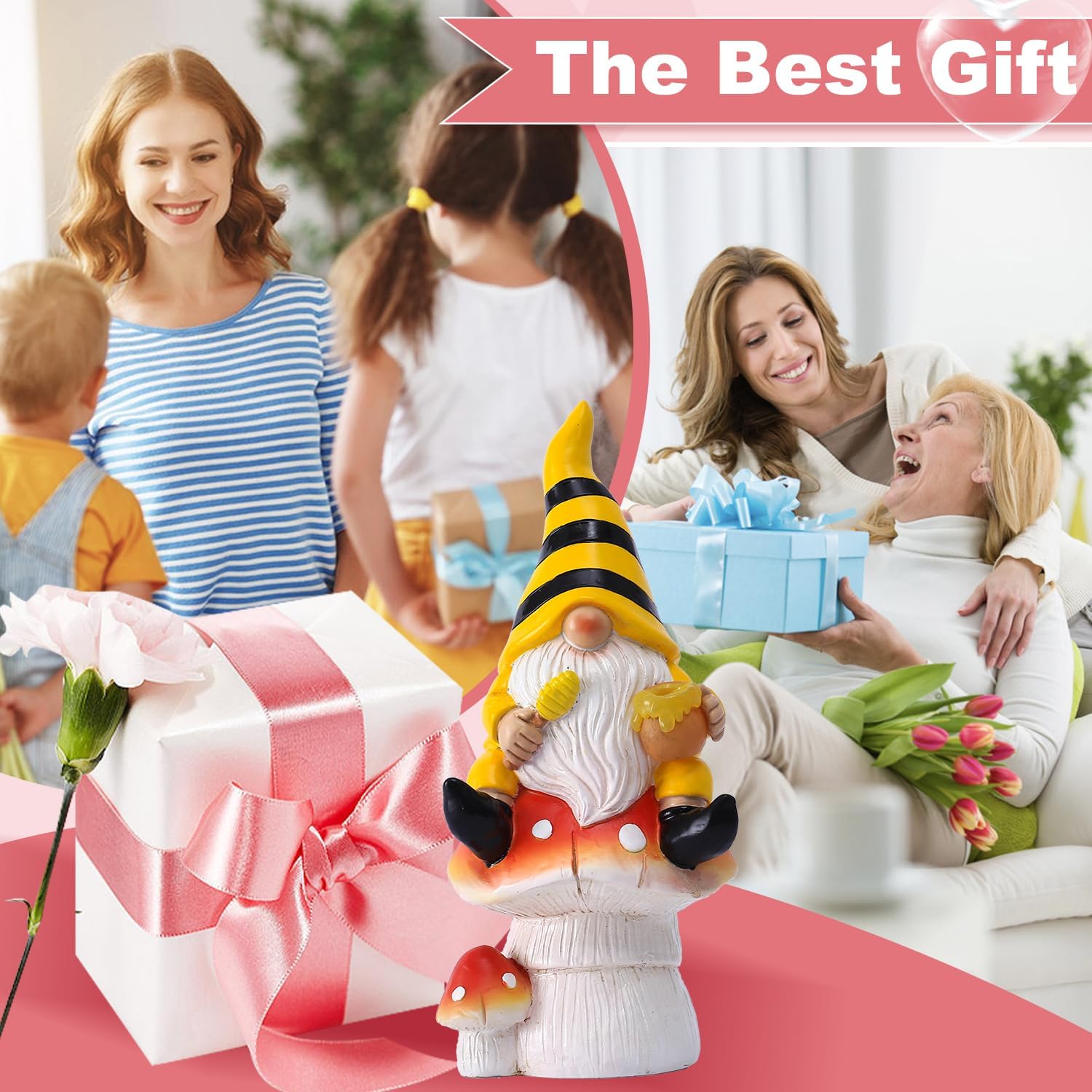 Solar Gnome on Mushroom Decor for Yard Decorations - 10 Inch Gnome Statue Decor for Outdoor,Perfect Garden Gifts for Women,Mom
