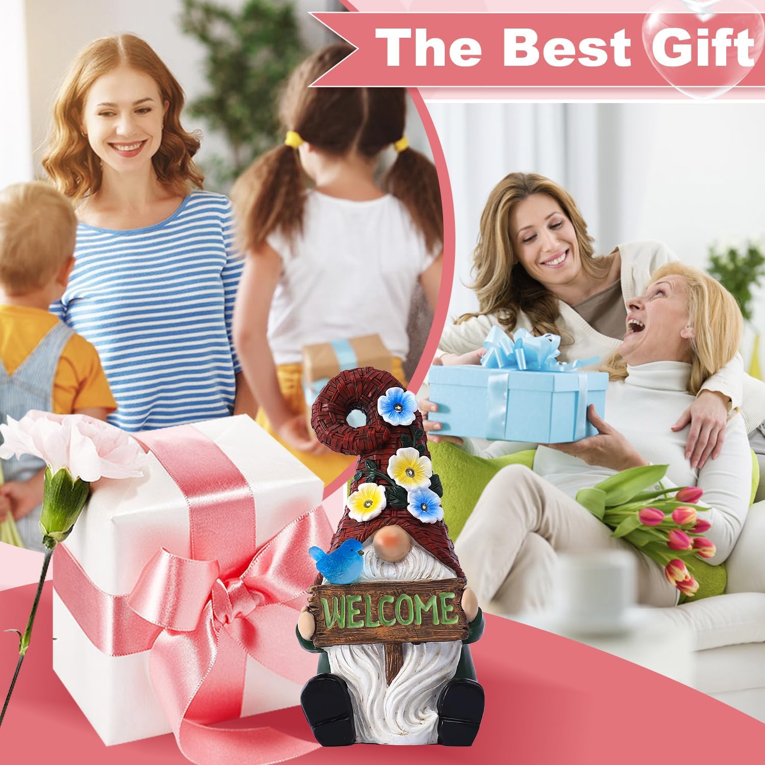 Solar Gnome with Wlecome Decor for Yard Decorations - 10 Inch Gnome Statue Decor for Outdoor,Perfect Garden Gifts for Women,Mom