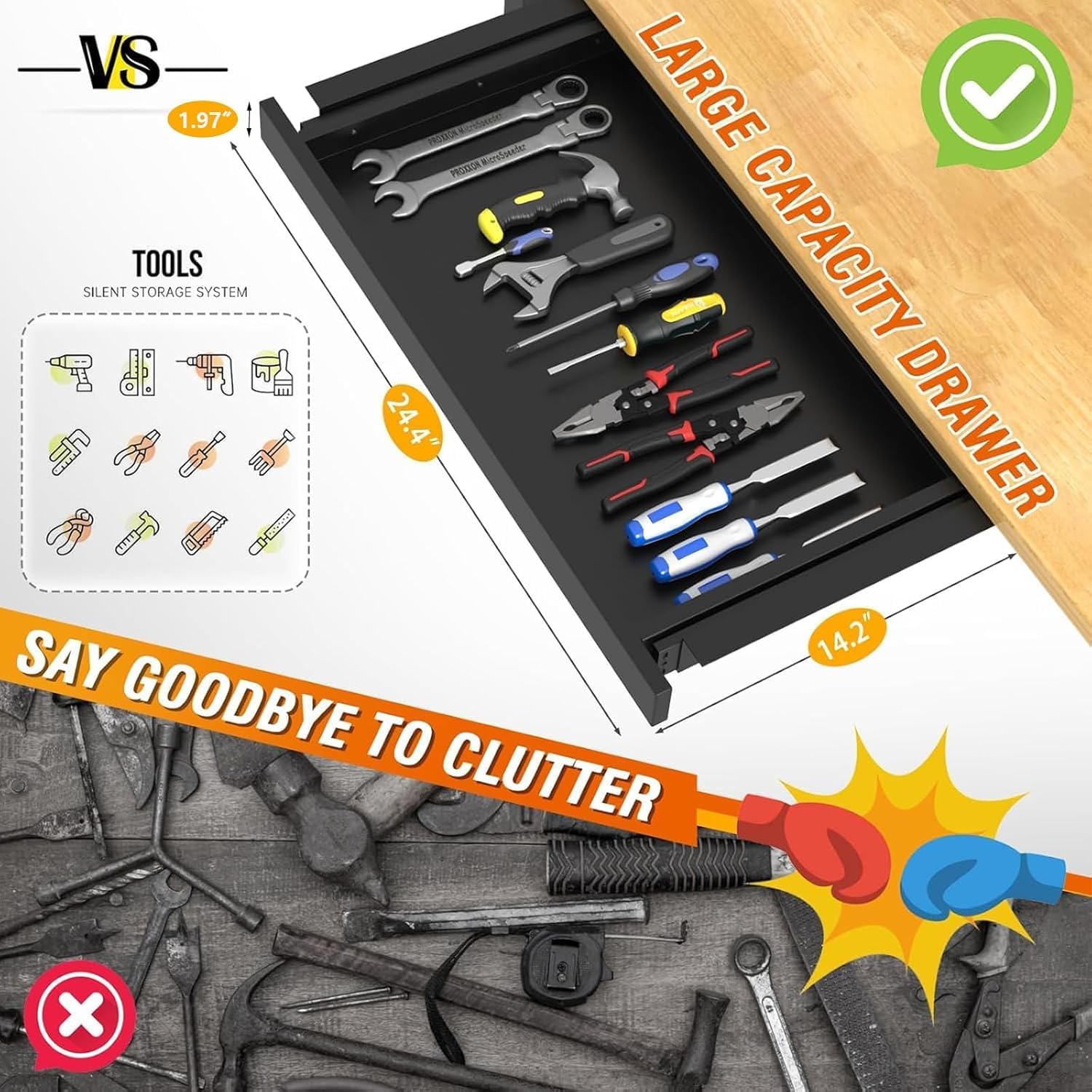 - Spacious Drawer: Keep your workspace tidy and organized with the built-in drawer. Store tools, supplies, and essentials within easy reach, minimizing clutter and maximizing efficiency. Enjoy a clean and streamlined workspace that promotes productivity and enhances your overall workflow.