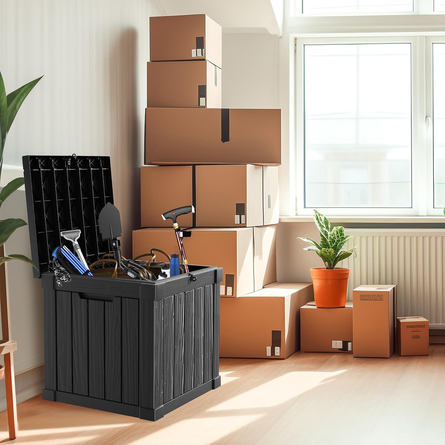 51 Gallon Resin Deck Box, Lockable Patio Outdoor Storage Box for Furniture, Garden Tools and Tools Storage, Waterproof Outside Storage Boxes - Black