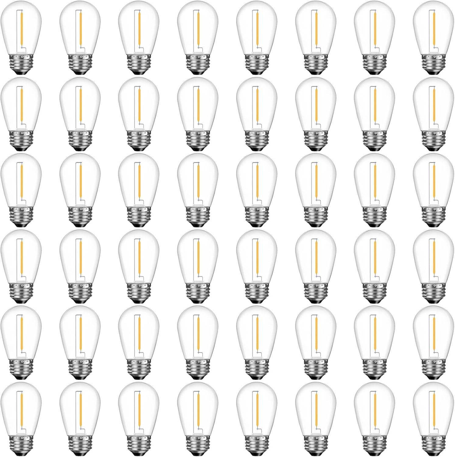 48 Pack Shatterproof LED Replacement Bulbs for Outdoor String Lights, S14 Edison Bulbs for Patio String Lights Outdoor Waterproof, Warm White 2200K, Dimmable, E26 Standard Base