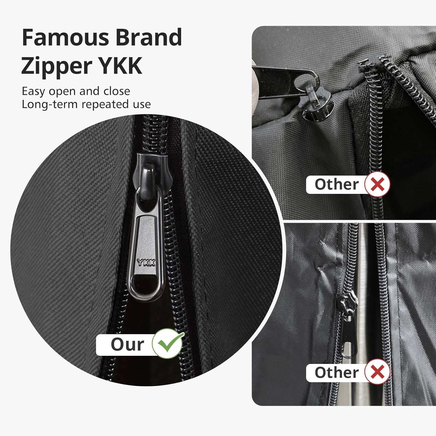 - 【Sturdy and Durable Zipper】Featuring a renowned YKK zipper, our outdoor heater cover guarantees smooth operation and superior durability. This high-quality zipper can withstand extensive use and heavy loads, lasting five times longer than typical zippers, ensuring repeated use over an extended period.