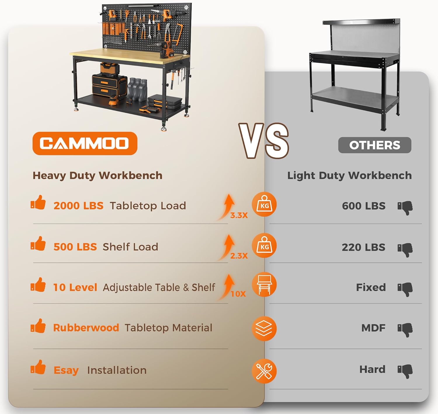- [Save time] Pre-installed and structures without driling save your installation time easily. Detailed instructions come with the package. We also provide a detailed assembly video on this page. Customize your workbenches for garage, office, home, commercial, and Woodworking Shop.