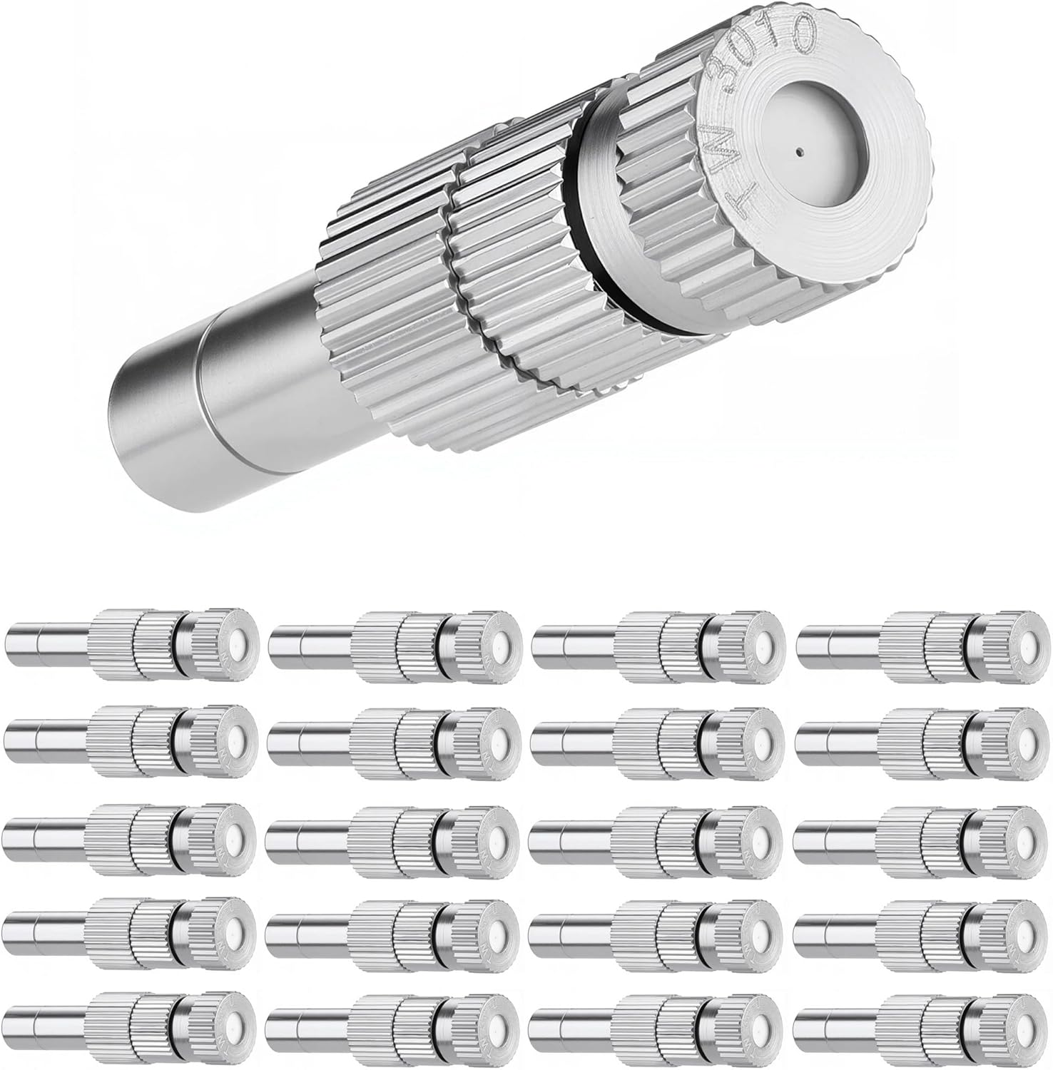 - 【Package Includes】: Mornajina detachable and washable Brass Misting Nozzles Mister Replacement Nozzles come with 20pcs mister nozzles with filter mesh, fit 1/4" Water Misting Nozzle Tees, Atomizing Misting Sprayer outer diameter: 0.35inch, orifice diameter: 0.3mm (0.012"), working pressure: 10-70kg/300-1000psi.