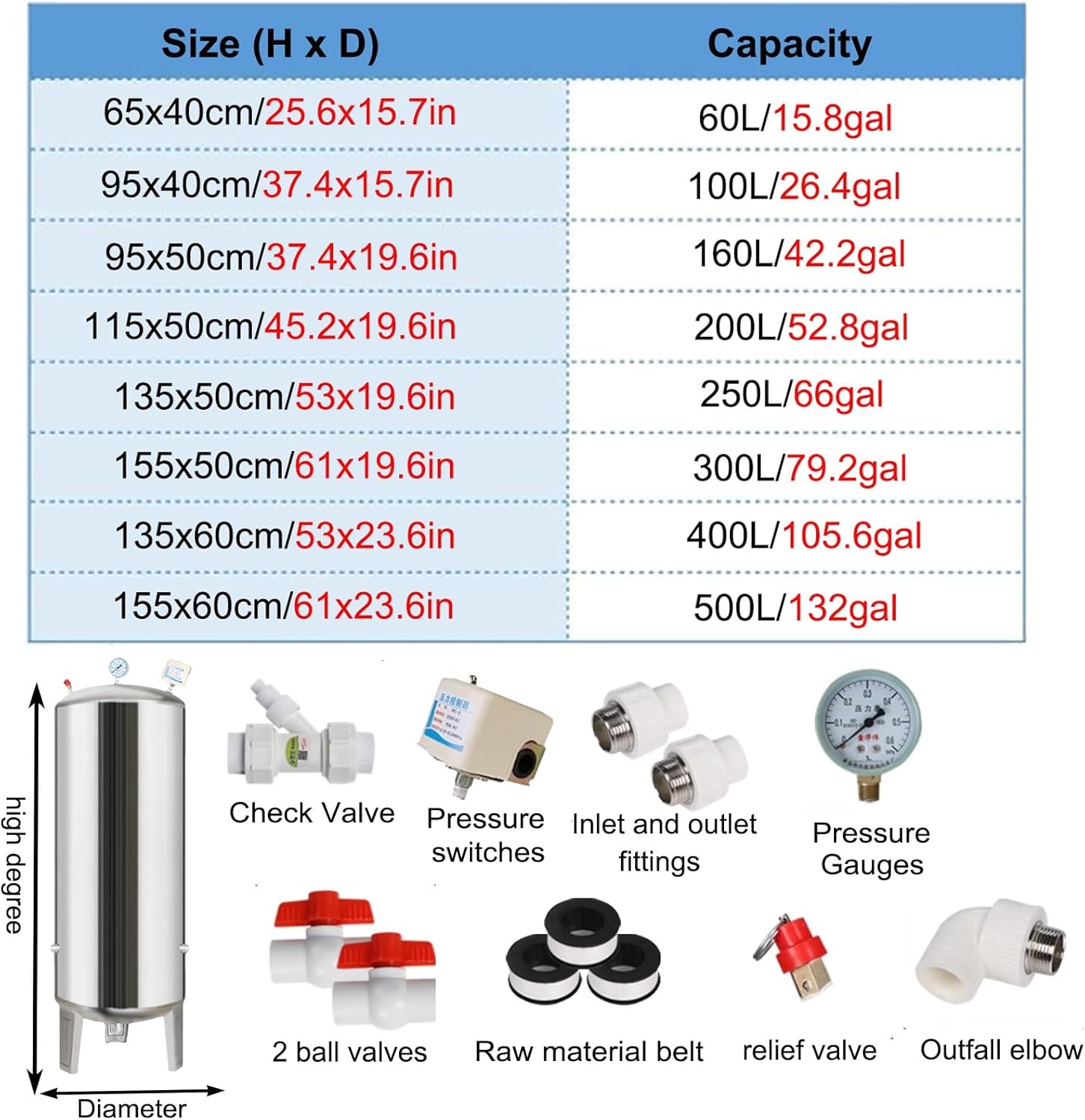 - WIDELY USED:Our pressure tank is ideal for pumping well water, industrial cleaning, tap water booster, garden watering, and so on. It can be used for a variety of purposes such as campus, agricultural and industrial water systems. Suitable for various domestic waterworks, solar installations and pressure maintenance systems.