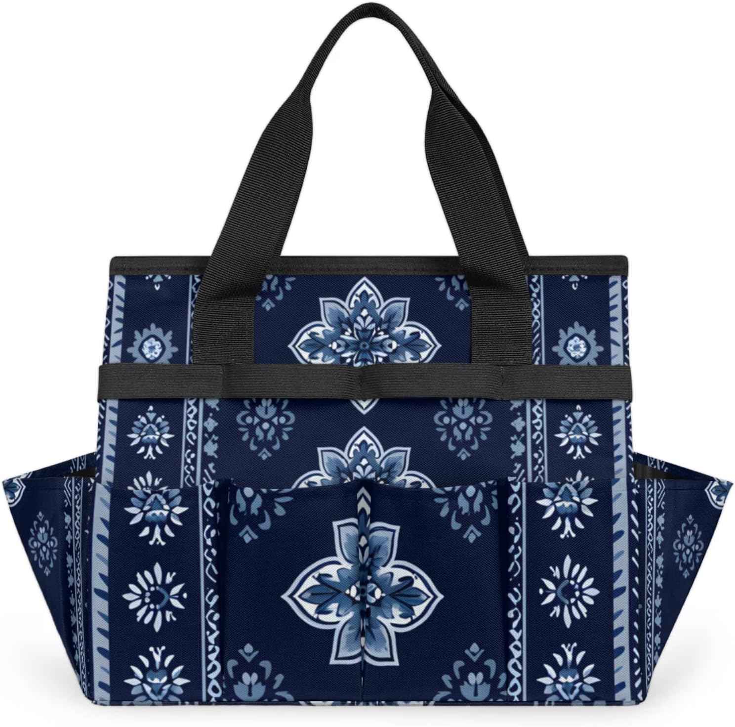 Westward Floral Gardening Tool Bag,Heavy Duty Garden Tote Bag,Portable Oxford Gardening Storage Basket Organizer Handbag with Pockets Handle,Hand Tools Gifts for Outdoor Garden Lawn Yard