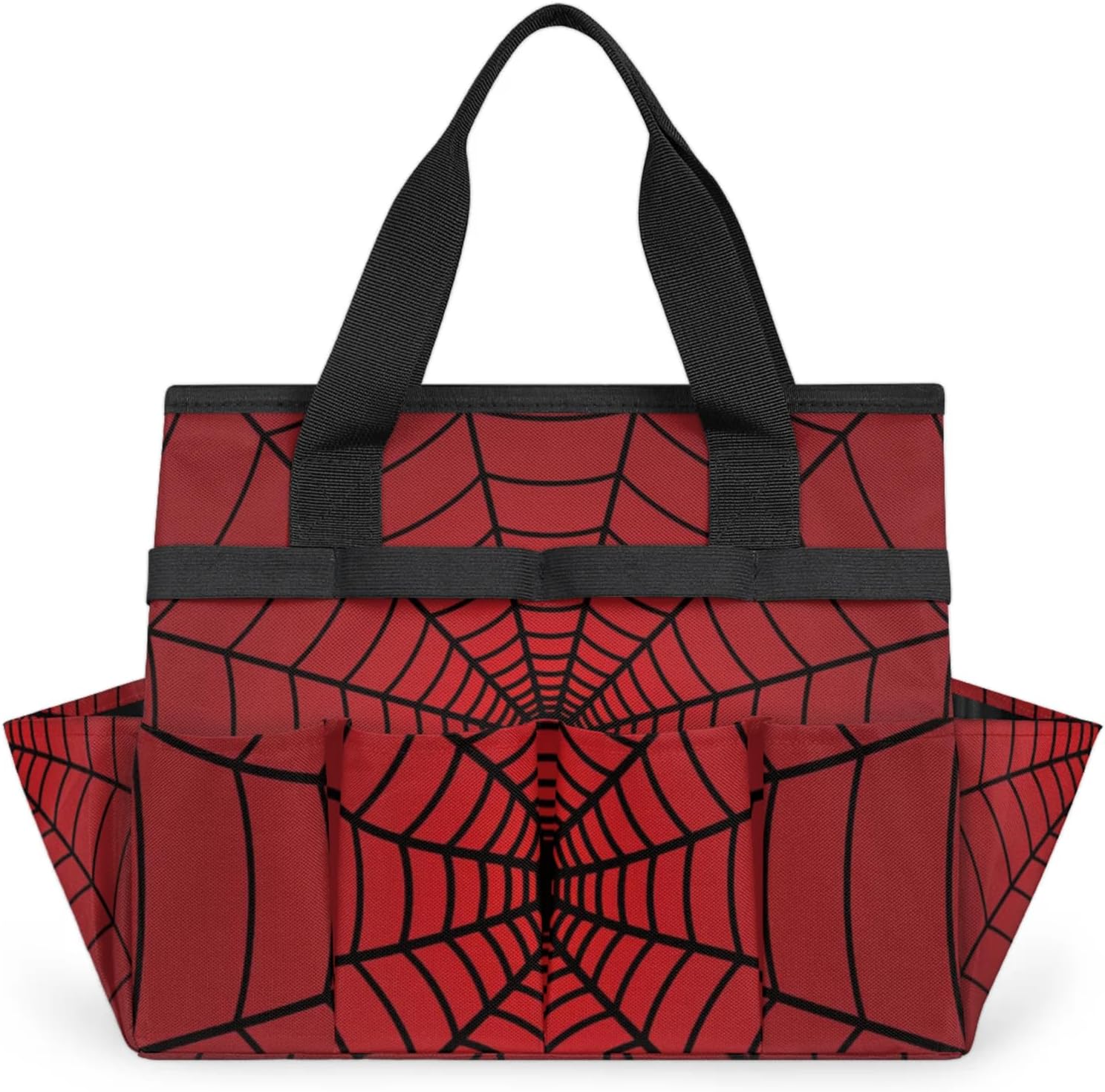 Spiders Web Red Gardening Tool Bag,Heavy Duty Garden Tote Bag,Portable Oxford Gardening Storage Basket Organizer Handbag with Pockets Handle,Hand Tools Gifts for Outdoor Garden Lawn