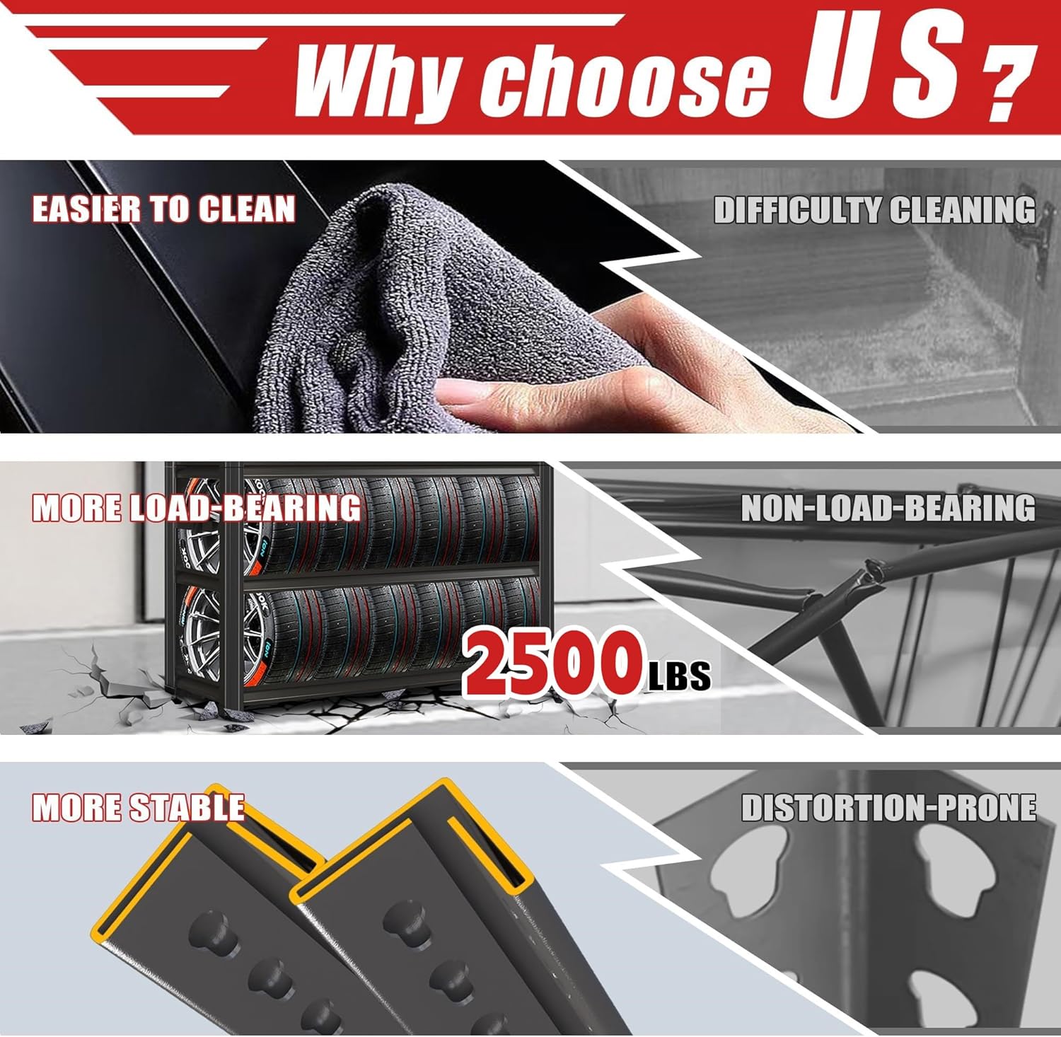 - ăHeavy-Duty 2500 lb Capacityă Constructed with industrial-grade steel and reinforced crossbars, this 5-tier shelving unit supports up to 500 lbs per shelf (even distribution), ideal for storing heavy tools, automotive parts, or warehouse inventory without bending or wobbling.