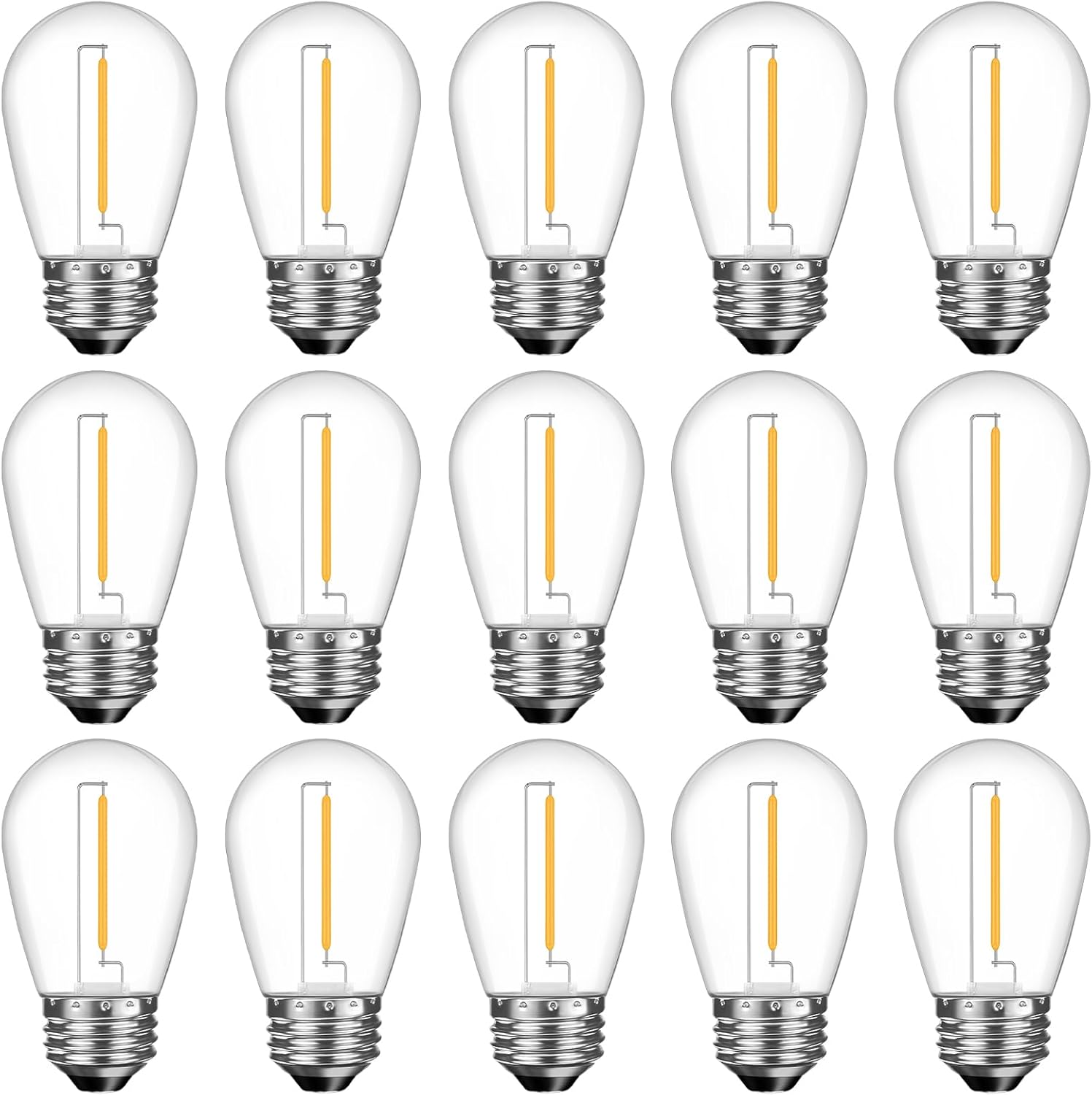 Shatterproof S14 LED Replacement Bulbs for Outdoor String Lights, 15 Pack 1W Equivalent to 11W Incandescent Bulb, Soft White 2200K, Dimmable, E26 Regular Base