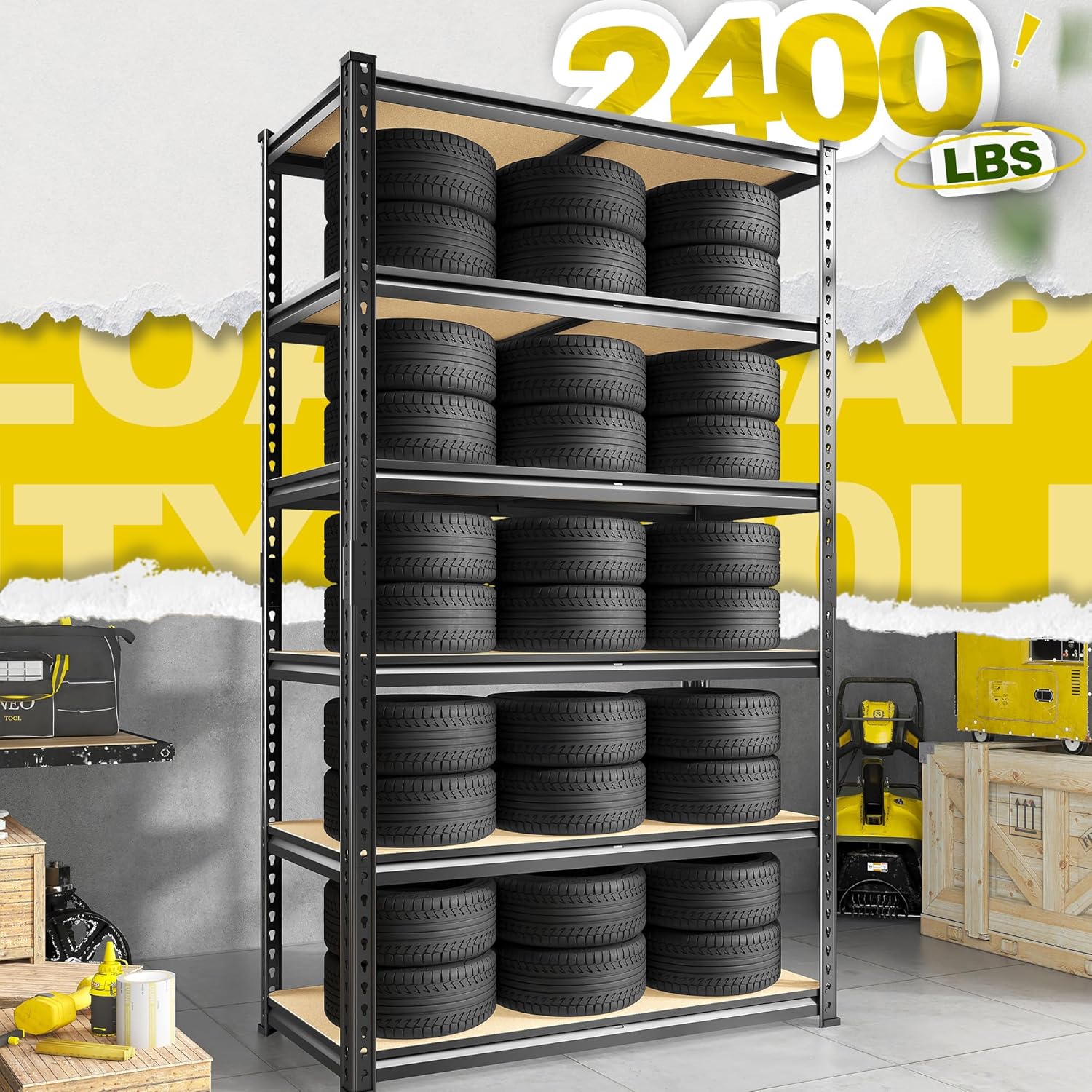 78" H Metal Shelving 6 Tier Garage Shelving Adjustable 2400LBS Storage Shelves Heavy Duty Pantry Shelves for Kitchen Closet Basement Warehouse