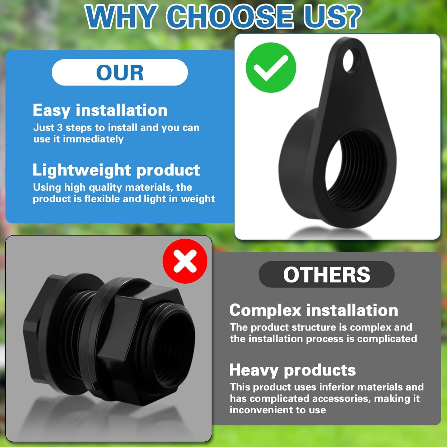 - Green and Water-Saving: The rainwater collection system formed by rain barrel spigot can collect rainwater and use it to irrigate the garden, reducing water costs