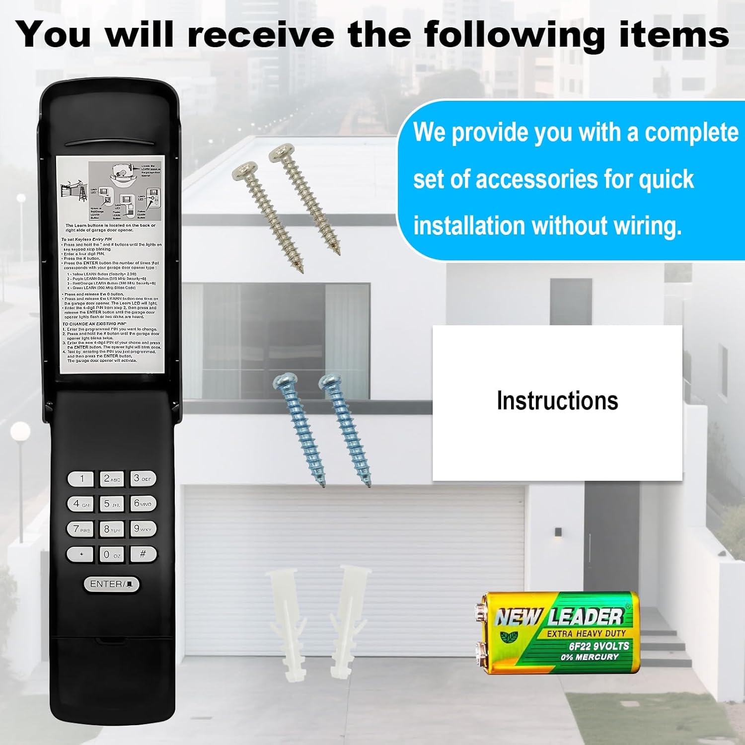 - Included Components : garage door opener keypad