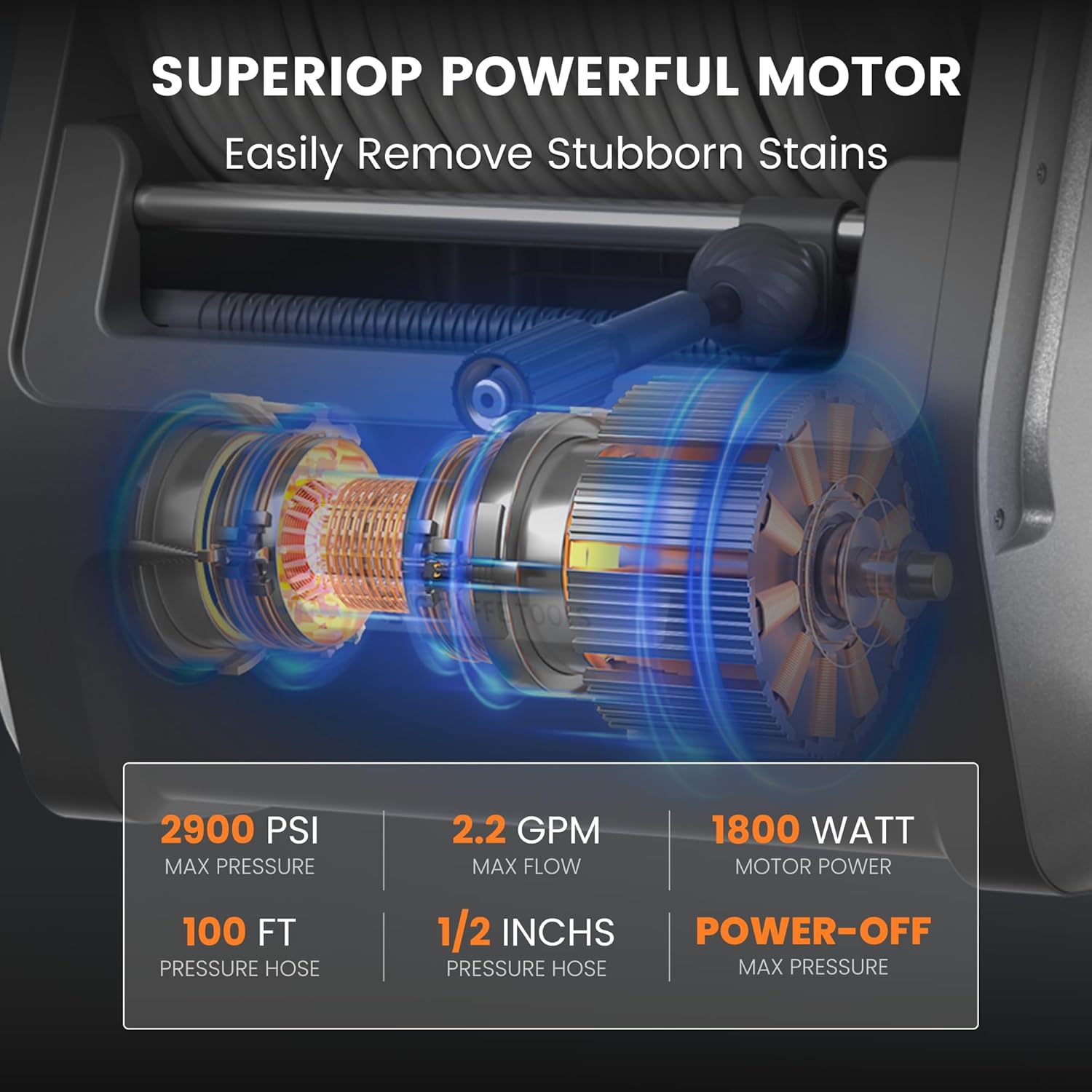 - Unmatched Cleaning Power: Generates up to 2900 psi of water pressure and 2.2 gpm of water flow for handling even the most stubborn grime quickly and effortlessly. Tackling tough tasks is effortlessly accomplished