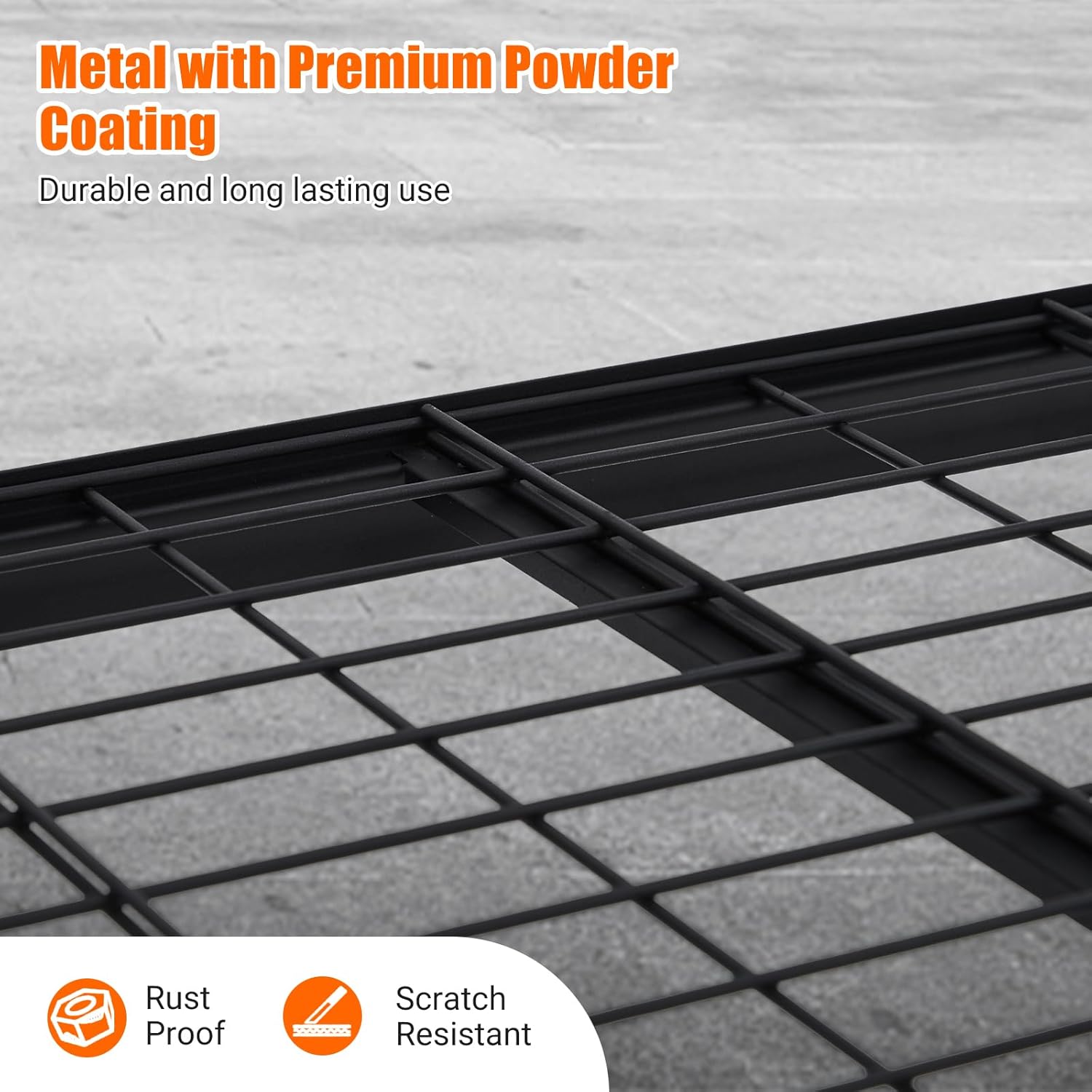 - ăUnmatched Heavy-Duty 2500LBS CapacityăEngineered with a solid steel frame and reinforced 0.157 inch thick wire mesh shelves, this garage shelving unit delivers an exceptional 2500-lb load capacity. The rolled-edge thickened columns and integrated support ribs ensure superior resistance to bending, warping, or breakingâmaking it built to handle even the heaviest tools and equipment with ease.