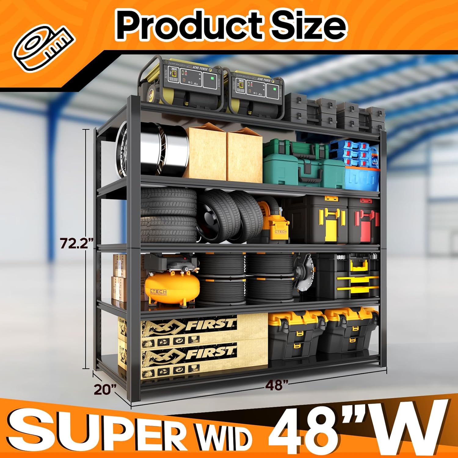 - ăAdjustable 5-Tier Metal Shelvesă Customize your storage by adjusting each shelf height to fit large bins, totes, or power tools. Ideal for garage organizers and storage, storage racks and shelving, tote storage racks, and long garage shelving setups.